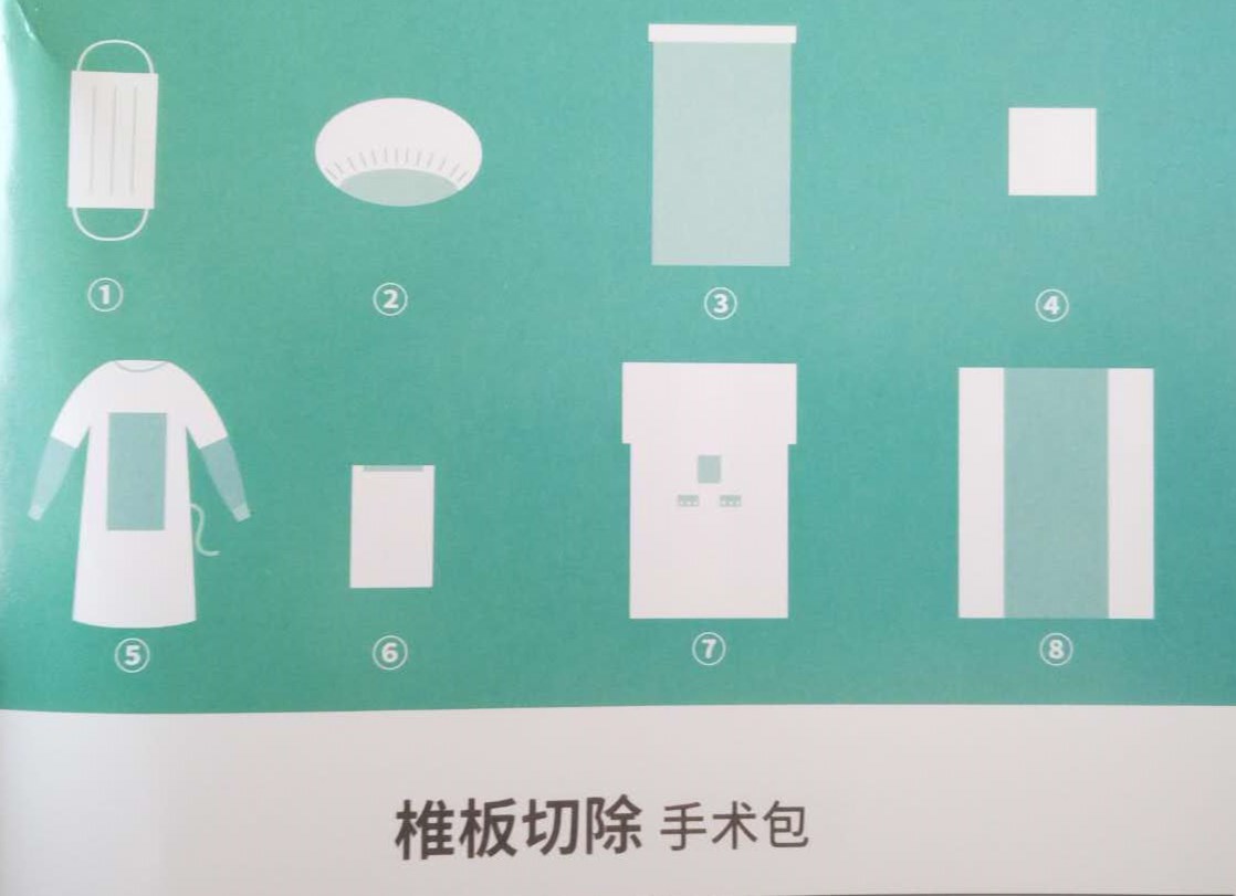 手术包配置:一次性使用医用口罩5个、一次性使用帽5个、医用一次性防护服5件条、手套5双、医用棉球10个、医用垫单2条、腹部垫单(30*30cm)10条、剖腹产单(180/245*260cm)1条、一次性使用包布1条。