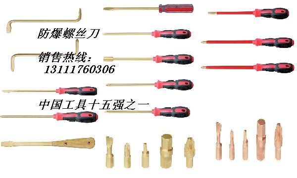 邮箱:281935698@ qq.com 防爆螺丝刀:用于紧固和拆卸十字槽螺钉,我公司生产的防爆螺丝刀有:防爆一字螺丝刀、防爆十字螺丝刀、防爆S型螺丝刀、防爆夹柄螺丝刀、防爆敲击螺丝刀等。该产品为铝铜合金或铍铜合金制品,铝青铜的硬度达到HRC28度,铍青铜的硬度达到HRC38度。经国家权威机构监督检测,防爆性能达到II类C级标准,试验浓度为21%的氢气中作业不产生火花,不引爆气体。