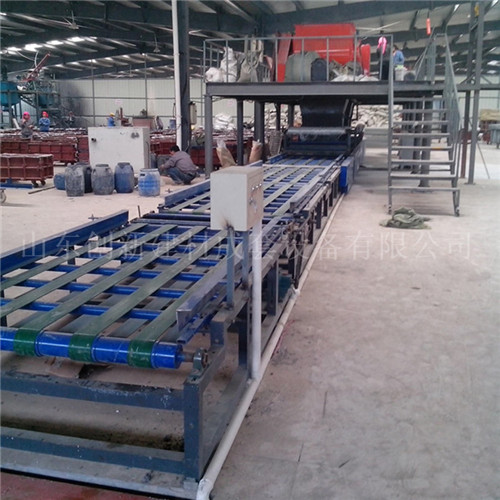 1、复合通风管板生产线采用双驱动,二次布料,二次复压的特种工艺,利用镁质无机胶凝材料、农业废弃物、珍珠岩粉等材料,经搅拌混合均匀后,常温成型,生产各种规格的双面轻质保温通风管道板。设备自动化程度高,劳动强度低,工艺简单,具有自动铺布、自动上料、传送准确、运行平稳、无噪音等特点。产品厚薄均匀,粘结强度高。