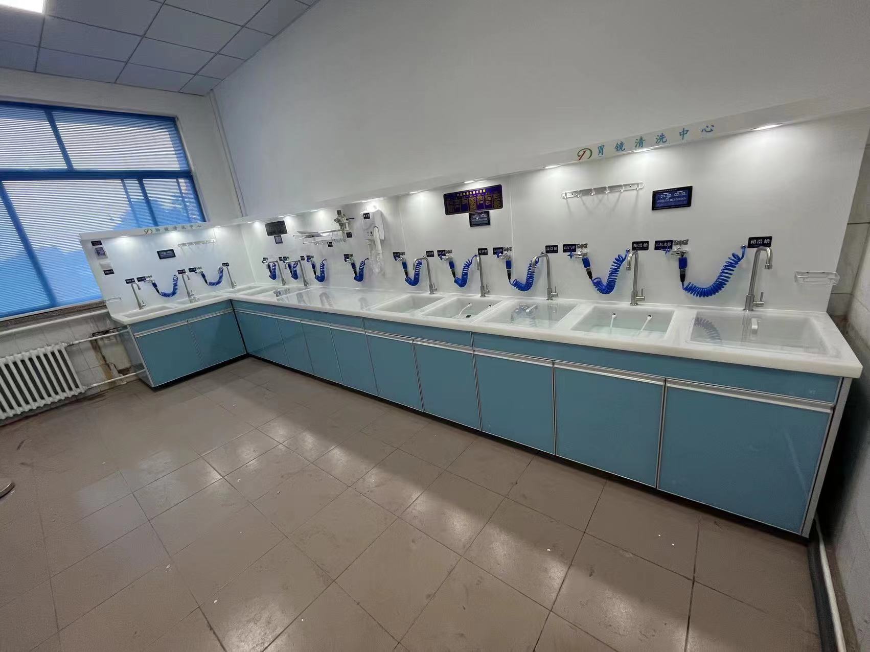 有机玻璃内窥镜清洗工作站产品特点:本产品采用高档有机玻璃材质制成,具有耐腐蚀、抗冲击力、对内窥镜无损伤等特点;产品主要采用微电脑控制系统,配备五槽清洗槽、高压水枪、高压气枪、水处理系统、气处理系统、干燥台、节液(酶)系统、给排水系统、照明系统及其他辅助设备。
