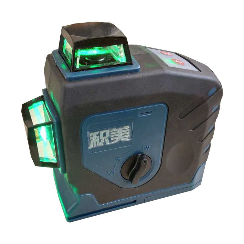 12线3D贴墙仪绿光水平仪贴牌7mm/LD蓝光室内外水平仪 友情提示:这款线非常细,市面上这样的没几个 采用的LD的激光管,寿命长,而市场上晶体的激光管子寿命一般在2000小时,LD是他它的10倍。而且不受温度影响。