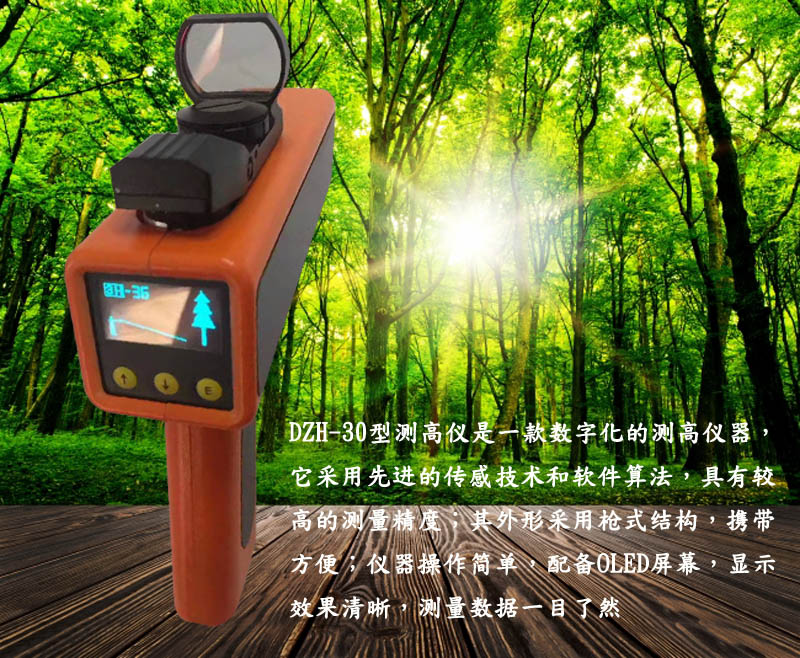 DZH-30型测高仪是一款数字化的测高仪器,它采用先进的传感技术和软件算法,具有较高的测量精度;其外形采用枪式结构,携带方便;仪器操作简单,配备OLED屏幕,显示效果清晰,测量数据一目了然。适用于林业调查中树木高度的测量,也可用于电力、铁塔、货运、通信、铁路等需要测距、测角、测高的场合。