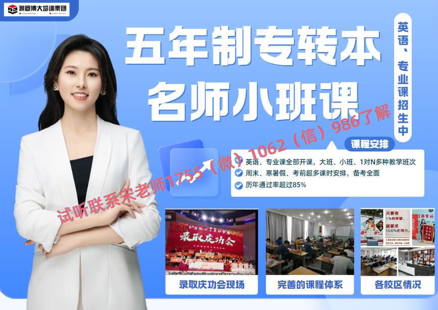 五年制专转本培训辅导就选择江苏瀚宣博大专转本学校,17年辅导五年制专转本英语和专业课,老师更专业,教学针对性强,提高成绩有保障,课程更全面,无论是哪个学校和专业都有对应课程,同时还有充足的课时,确保同学们备考更全面!
