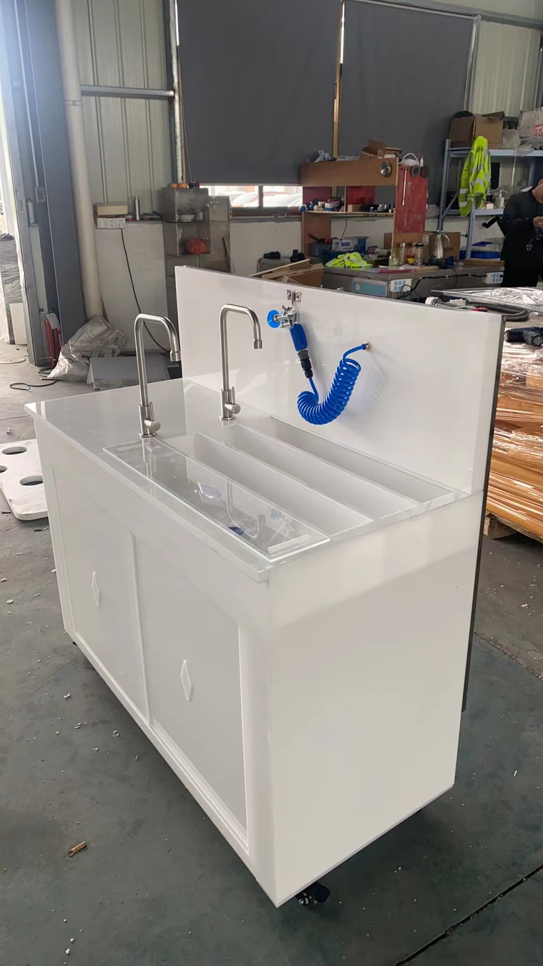 安装完好配备上、下水管和接水龙头,客户只需5—10分钟即可全部安装完毕、投入使用。为方便医务人员的清洗工作,内窥镜清洗槽下部特设有储存柜,可存放试剂、手套等医疗器械。