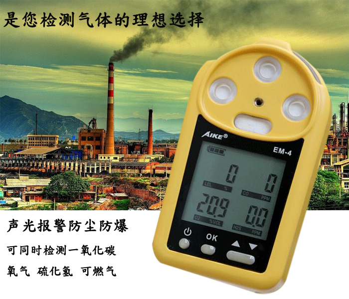 便携式气体检测仪 EM-4澳洲新 可检测4种气体 声光报警 防尘防爆