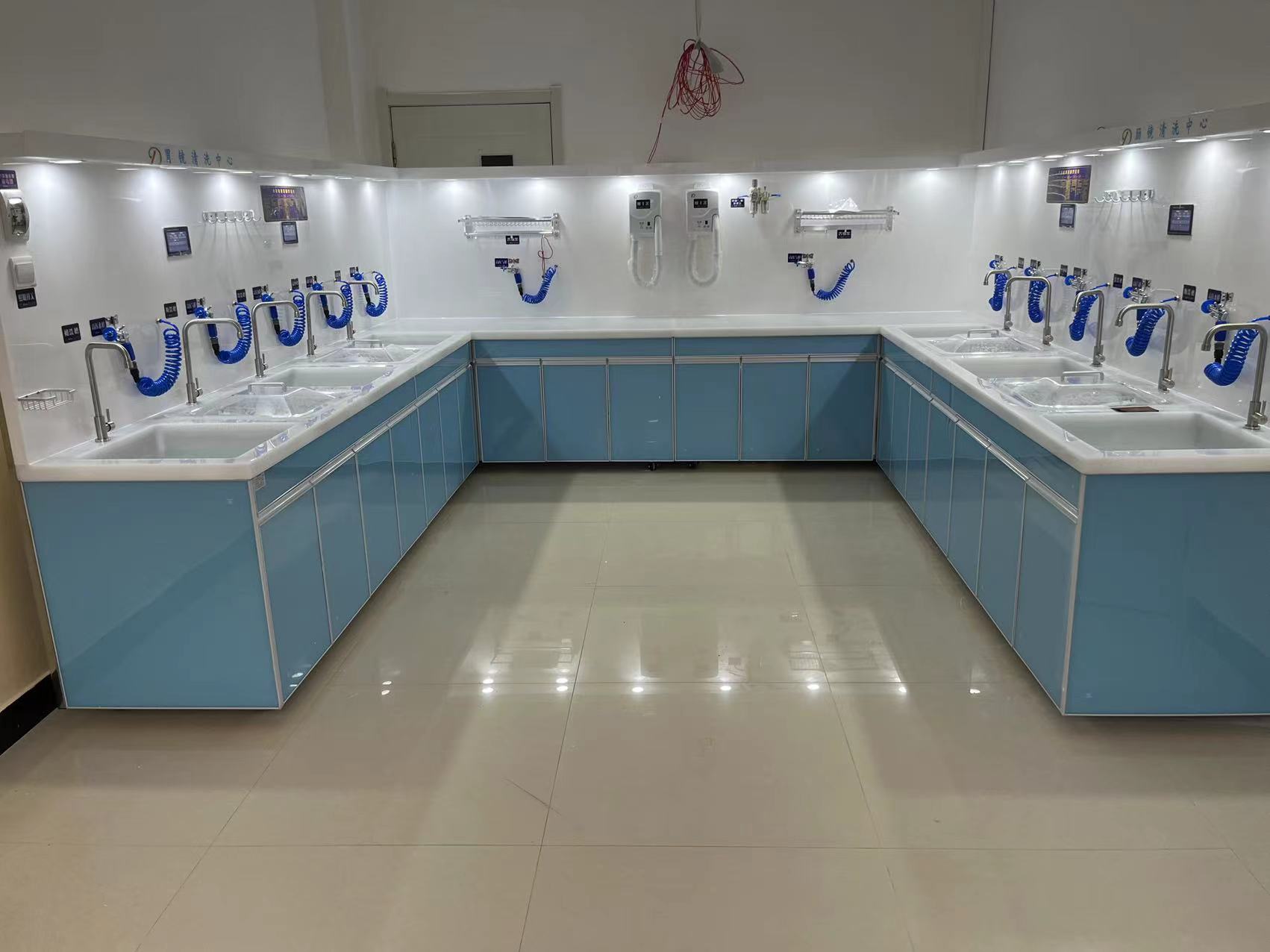 有机玻璃内窥镜清洗工作站产品特点:本产品采用高档有机玻璃材质制成,具有耐腐蚀、抗冲击力、对内窥镜无损伤等特点;产品主要采用微电脑控制系统,配备五槽清洗槽、高压水枪、高压气枪、水处理系统、气处理系统、干燥台、节液(酶)系统、给排水系统、照明系统及其他辅助设备。