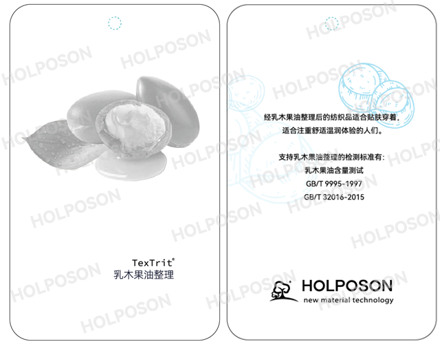HOLPOSON® BODY SHEA BUTTER主要成分是从非洲乳木果中提炼所得的乳木果油***整理剂HOLPOSON® BODY SHEA BUTTER主要应用于:内衣,家纺、围巾、手套、袜子等贴肤纺织品。