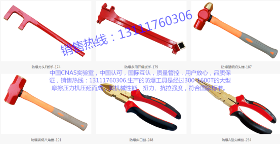 防爆工具在易燃易爆场所是不可代替的安全工具,摩擦、撞击不产生火花,而且具有安全的机械性能,良好的硬度和扭矩,在使用中不变形,符合它的使用价值。产品主要应用于石油、化工、炼化、采油、采气、油气管输、储运、煤矿、军工、核电、航空、制药等行业。