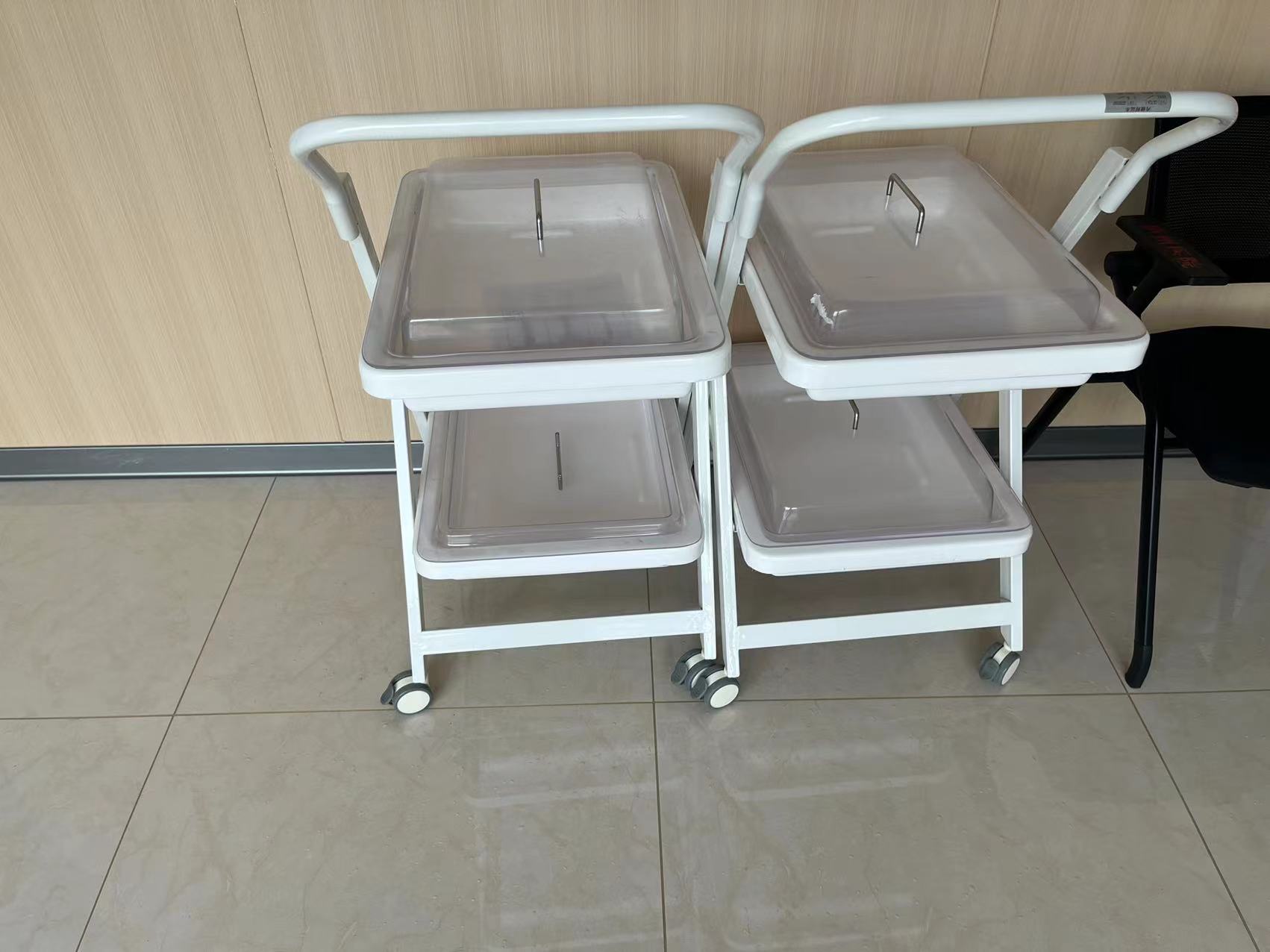 小推车二层、三层独立式设计,周转盘材料由高分子复合材料独立开模制成,车体由钢体喷塑而成,具有耐腐蚀、不沾水、车行顺畅、取放方便等优点。盘内内镜存放导航隔条使污染部分分离。多层设计使客户在使用过程中可将清洁和污染的内镜分层标明后置放,可达到高效周转,避免交叉感染等功效。